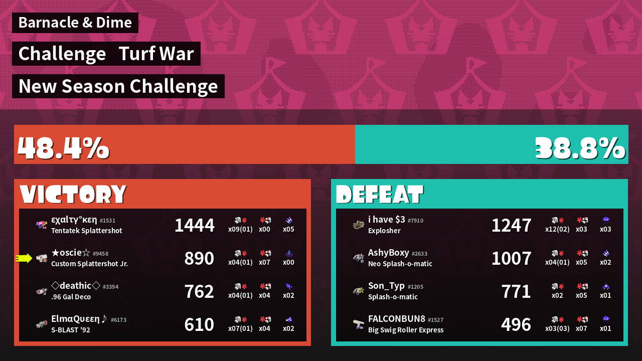 | Medals | #1 Home-Base Inker #1 Super Jump Spot #1 Splat Assister | ||