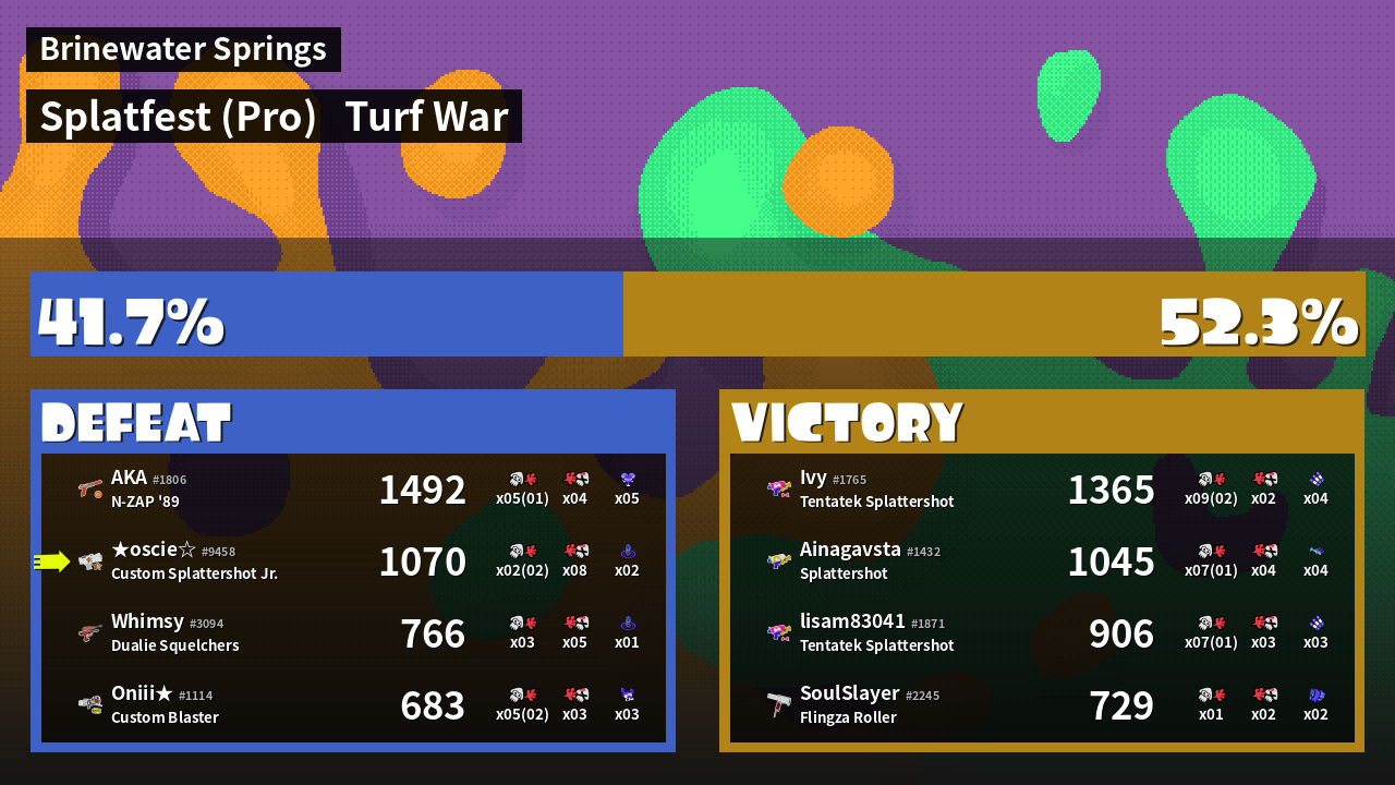 | Medals | #1 Super Jump Spot #1 Splat Assister #1 Wave Breaker User | ||