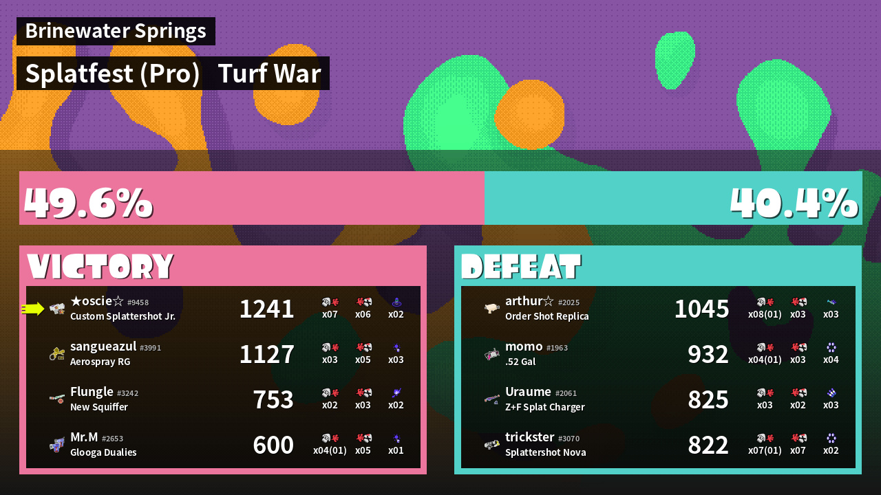 | Medals | #1 Overall Splatter #1 Turf Inker #1 Popular Target | ||