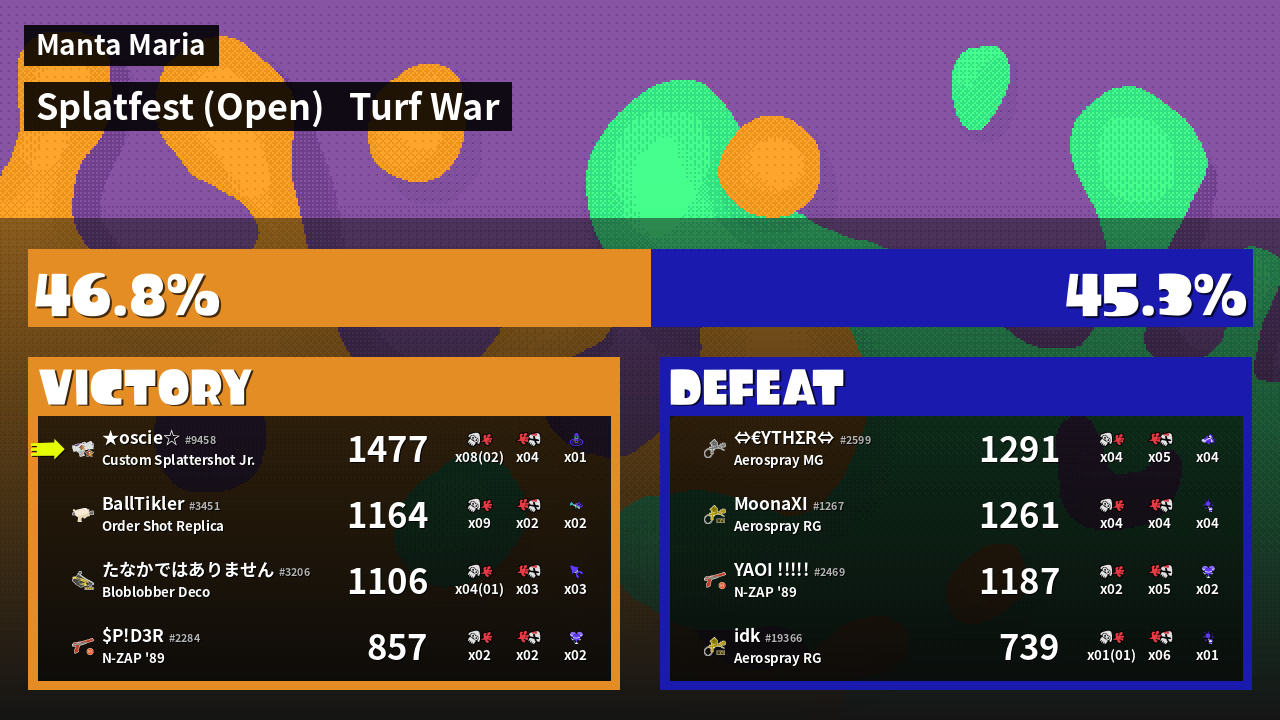 | Mode | Turf War - Splatfest (Open) | ||