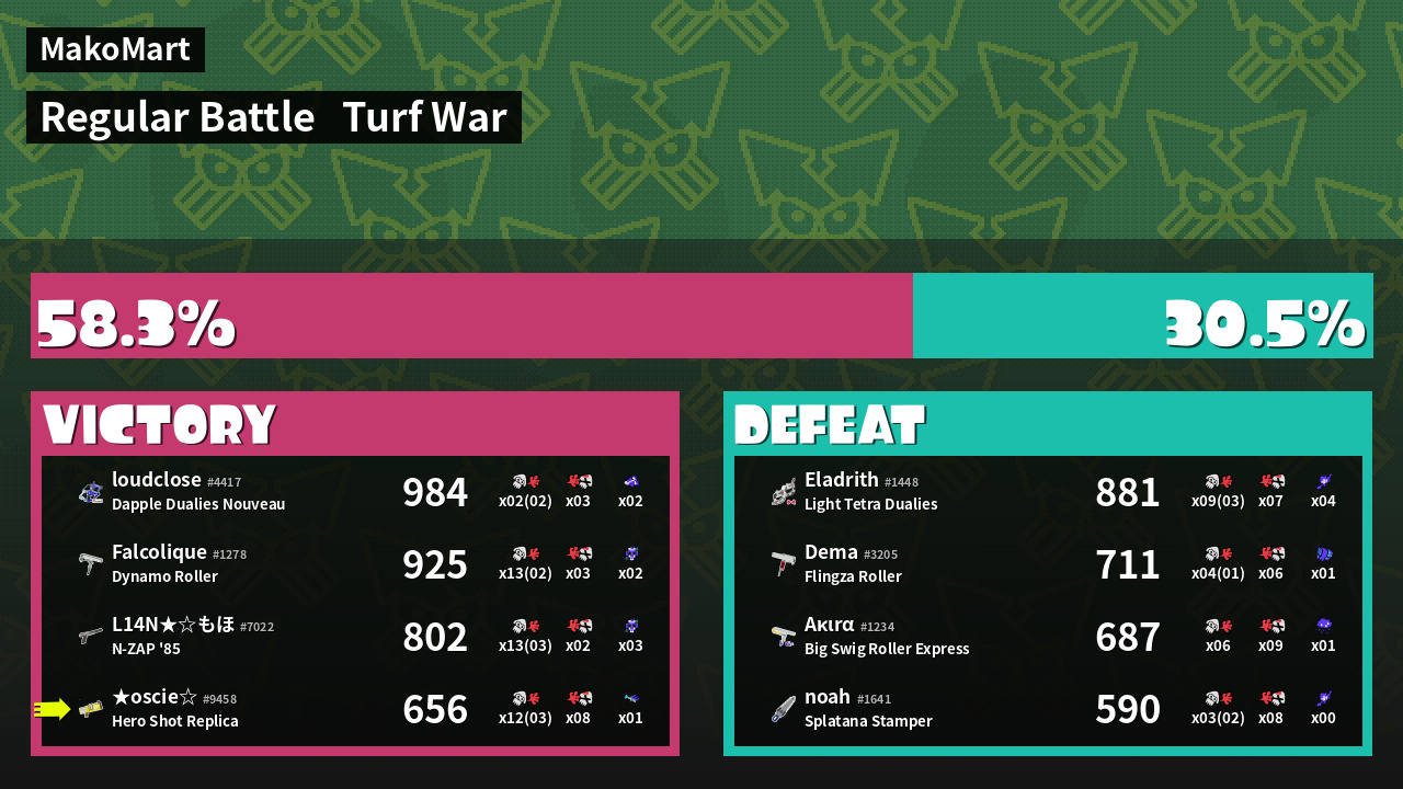 | Medals | #1 Splat Assister #1 Trizooka User #2 Enemy-Base Inker | ||