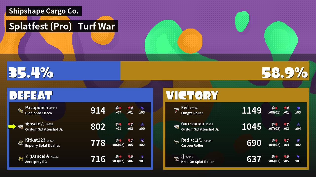 | Mode | Turf War - Splatfest (Pro) | ||