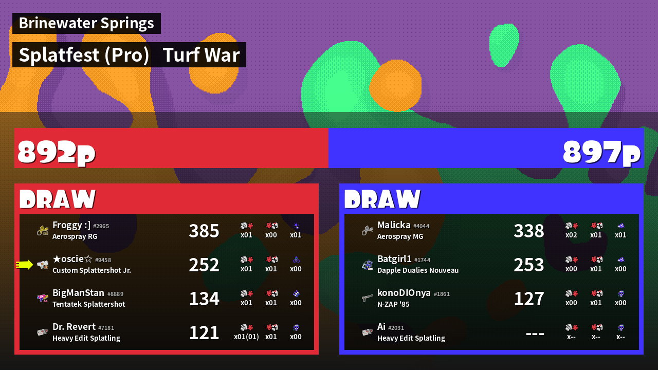 | Mode | Turf War - Splatfest (Pro) | ||