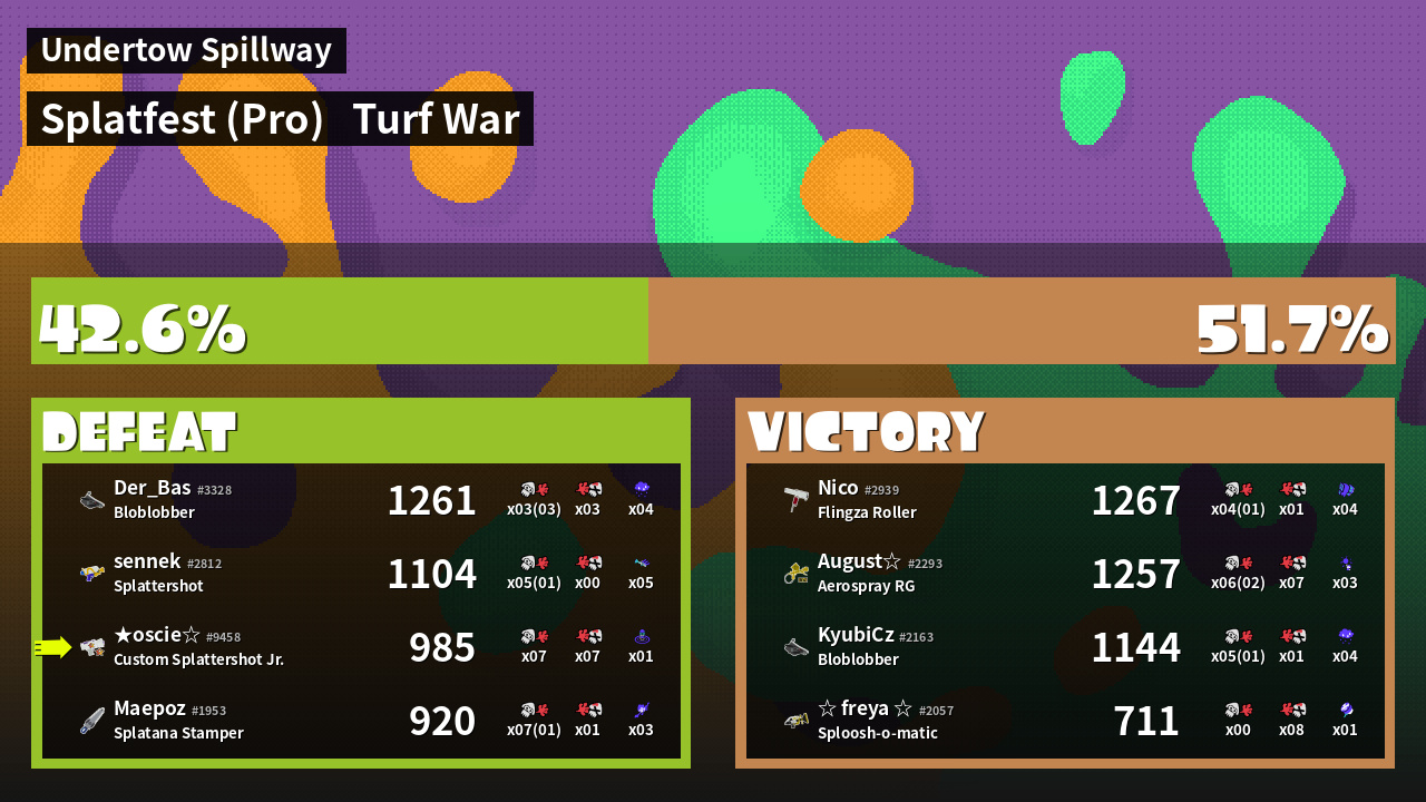 | Mode | Turf War - Splatfest (Pro) | ||