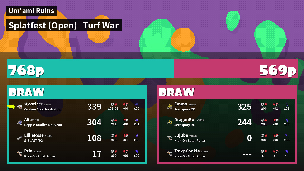 | Mode | Turf War - Splatfest (Open) | ||