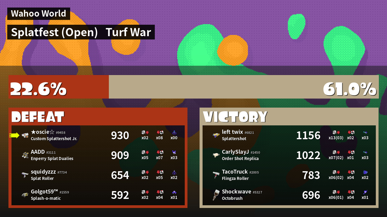 | Medals | #1 Turf Inker #1 Home-Base Inker #1 Enemy-Base Inker | ||