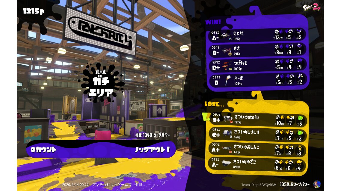 | Mode | Splat Zones - League Battle (Quad) | ||||||||||||||||||||||||||||||||||||||||