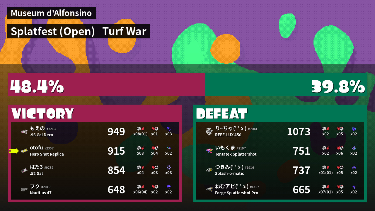| Medals | #1 Overall Splatter #1 Home-Base Inker #1 Enemy Splatter | ||