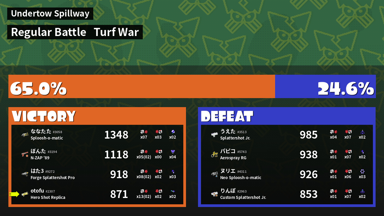 | Medals | #1 Overall Splatter #1 Enemy Splatter #1 Splat Assister | ||