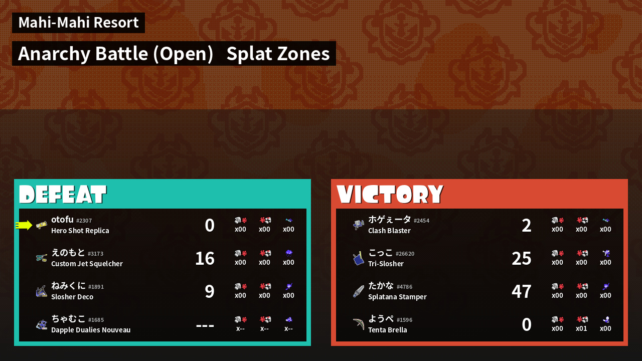 | Mode | Splat Zones - Anarchy Battle (Open) | ||
