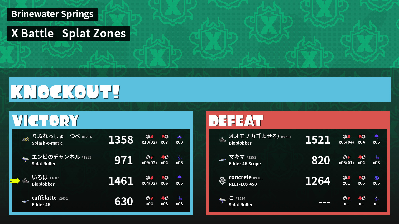 | Mode | Splat Zones - X Battle | ||
