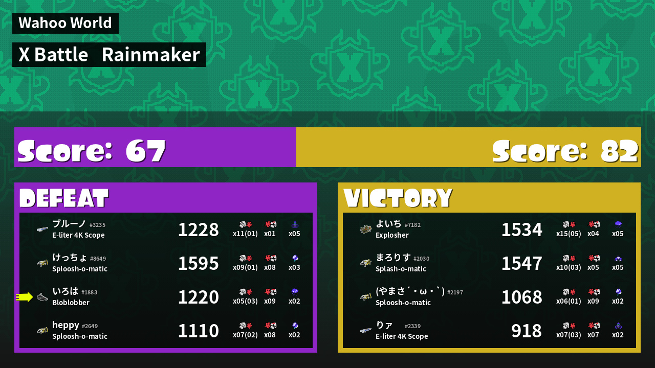 | Weapon | Bloblobber ( Sprinkler / Ink Storm) | ||
