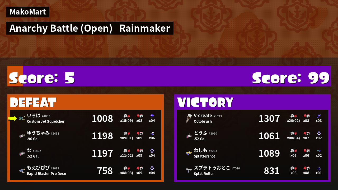 | Mode | Rainmaker - Anarchy Battle (Open) | ||