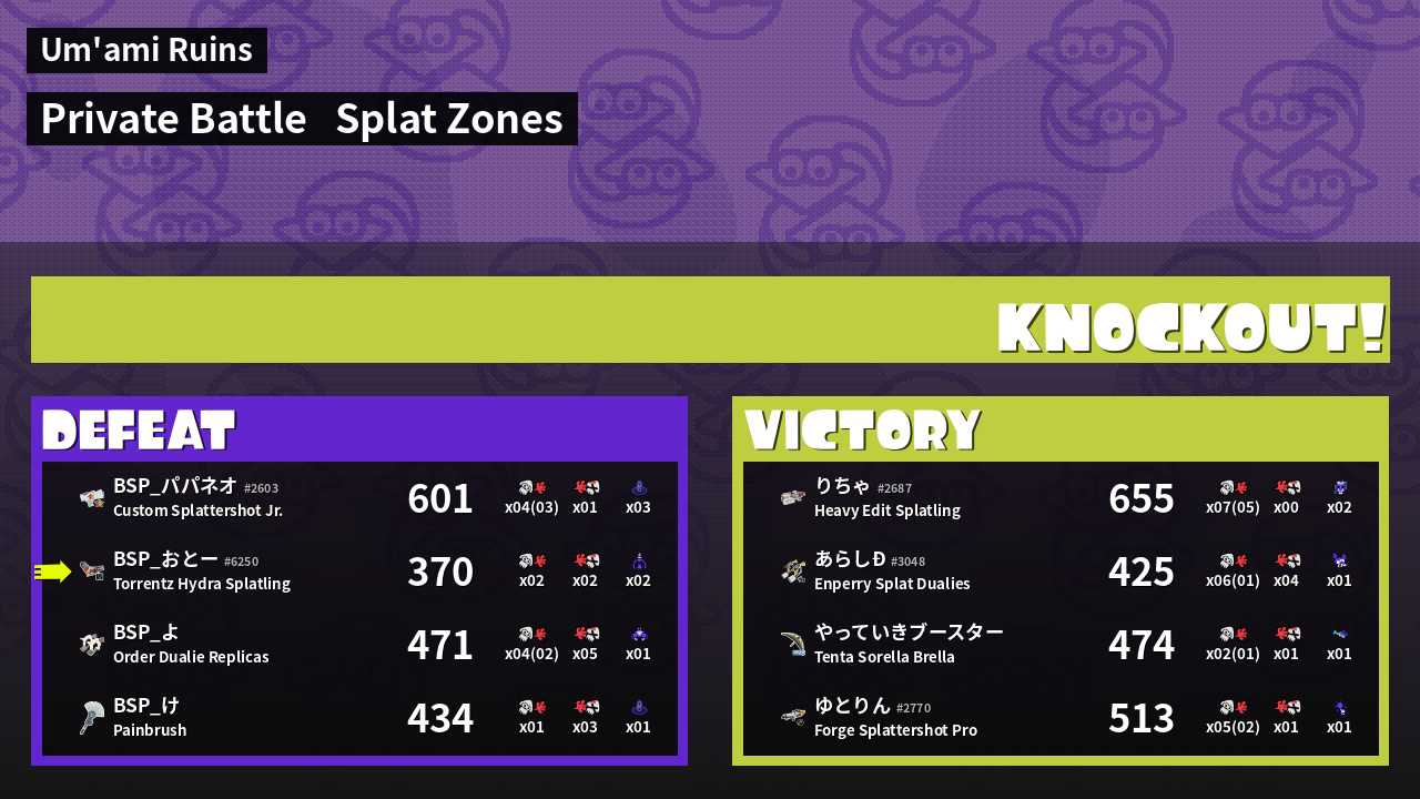 | Weapon | Torrentz Hydra Splatling ( Sprinkler / Big Bubbler) | ||