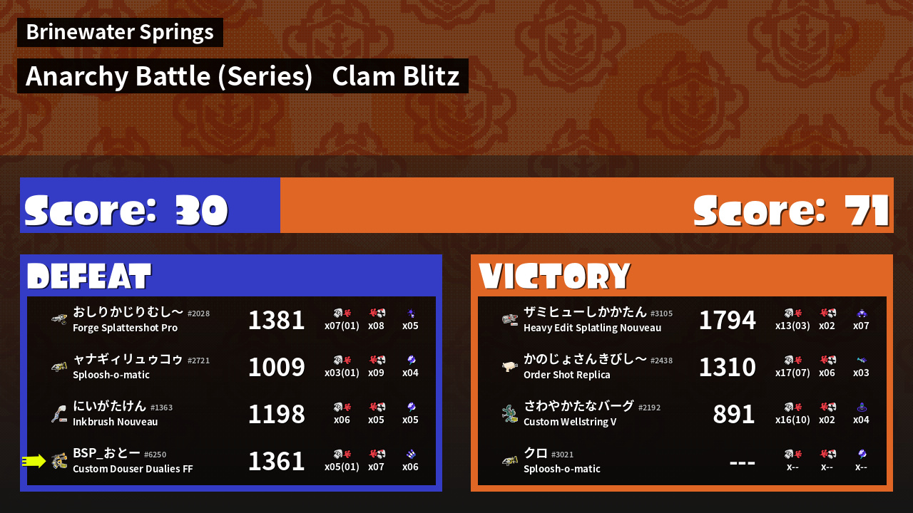| Mode | Clam Blitz - Anarchy Battle (Series) | ||