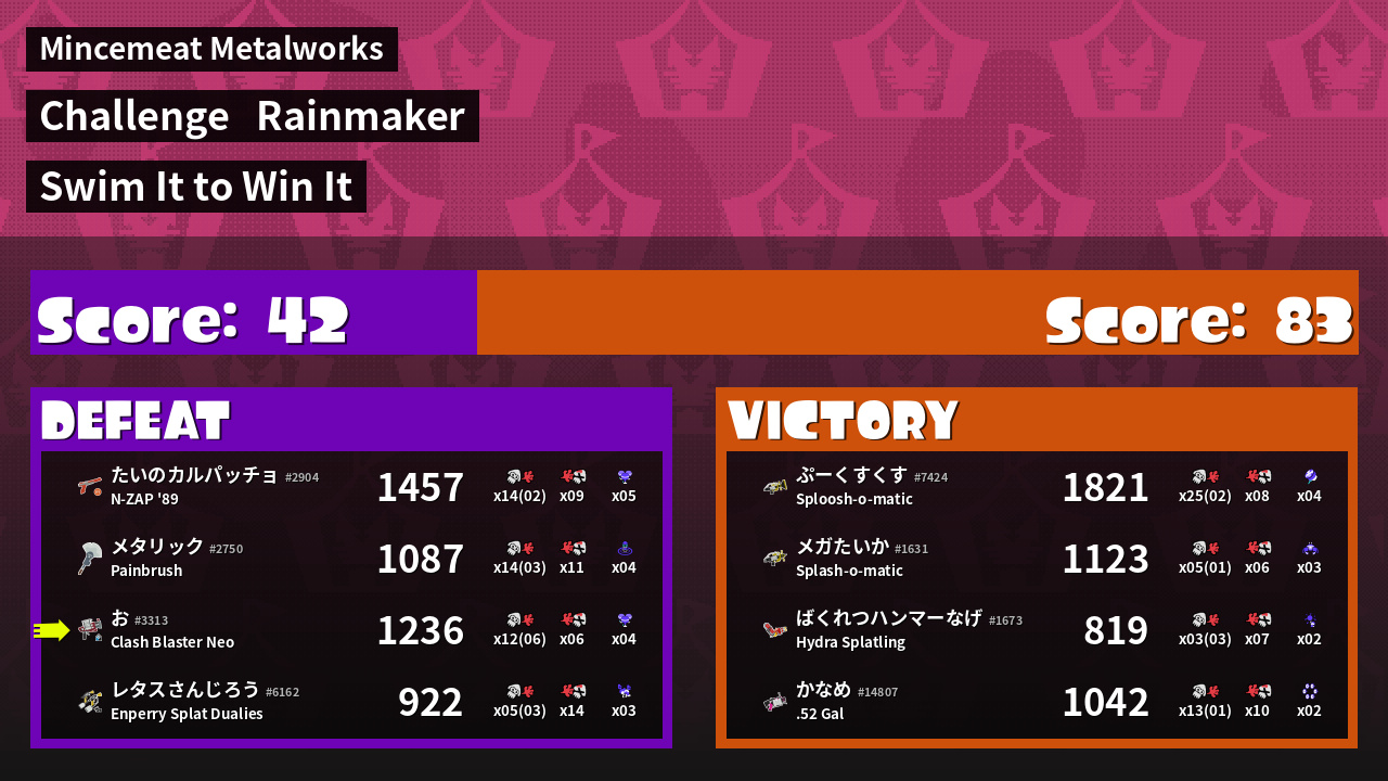 | Medals | #1 Score Booster Record-Score Setter #1 Splat Assister | ||