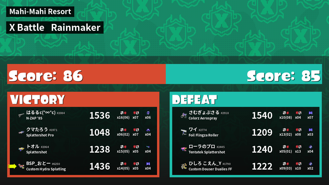 | Mode | Rainmaker - X Battle | ||