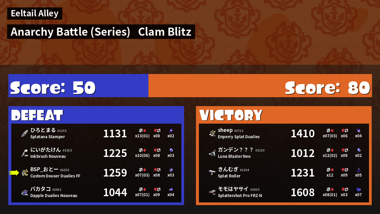 | Mode | Clam Blitz - Anarchy Battle (Series) | ||
