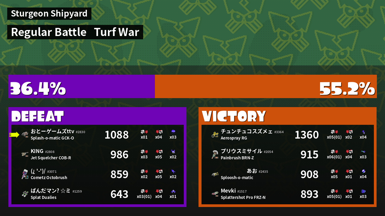 | Mode | Turf War - Regular Battle | ||