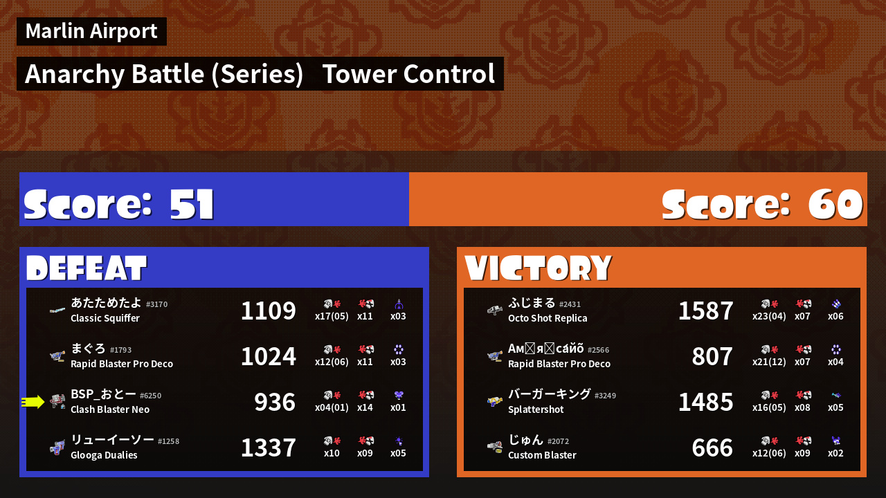 | Mode | Tower Control - Anarchy Battle (Series) | ||