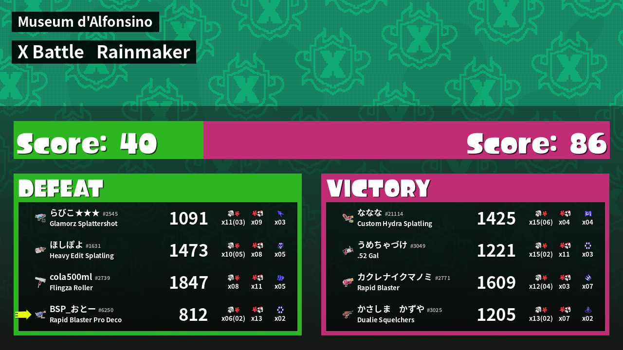 | Mode | Rainmaker - X Battle | ||