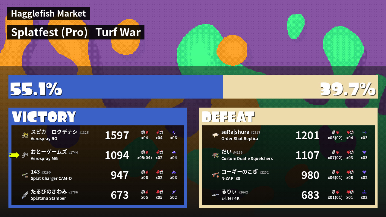 | Medals | #1 Enemy-Base Inker #1 Super Jump Spot #1 Splat Assister | ||