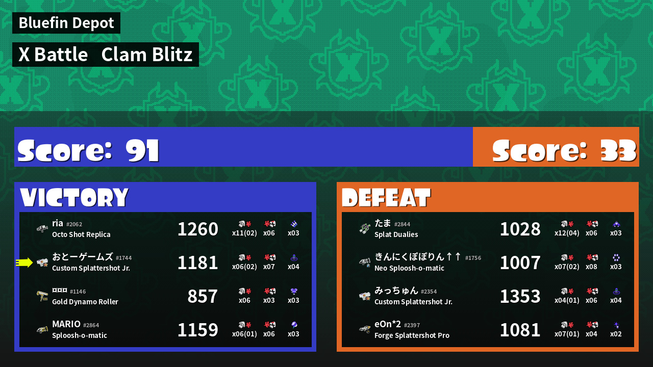| Mode | Clam Blitz - X Battle | ||