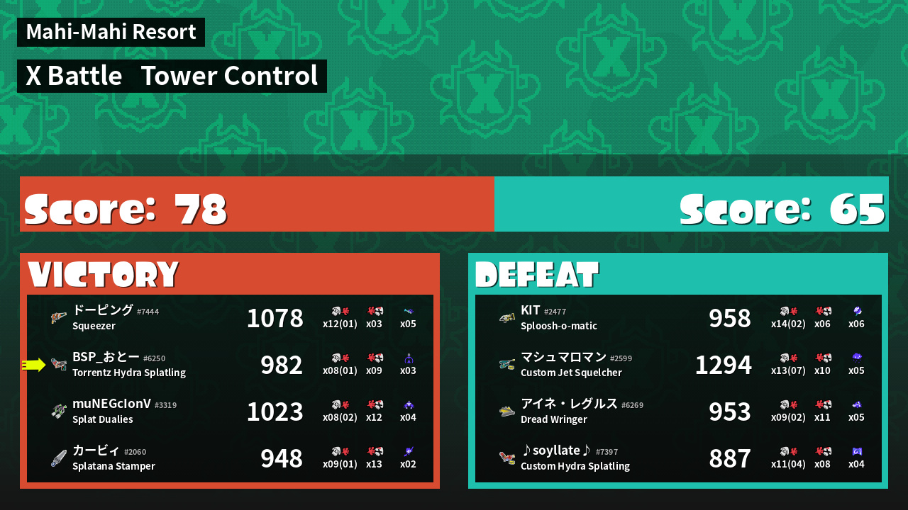 | Mode | Tower Control - X Battle | ||