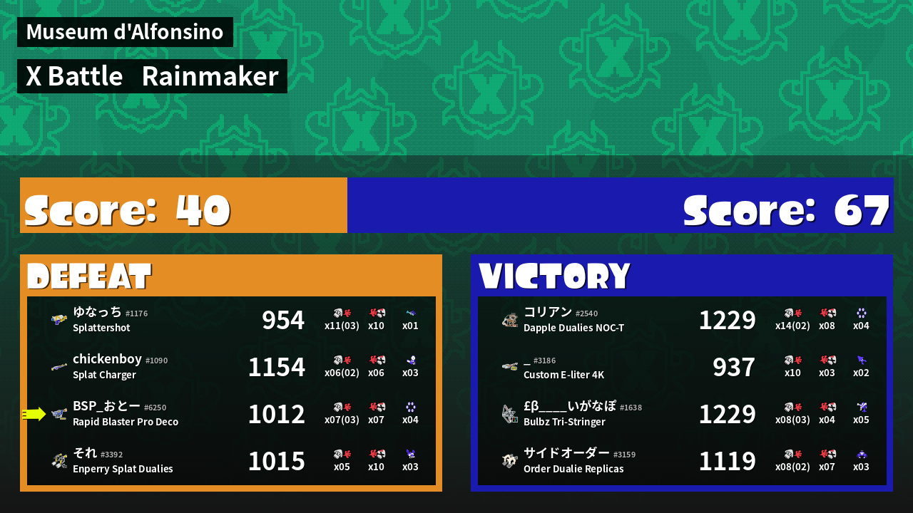 | Mode | Rainmaker - X Battle | ||