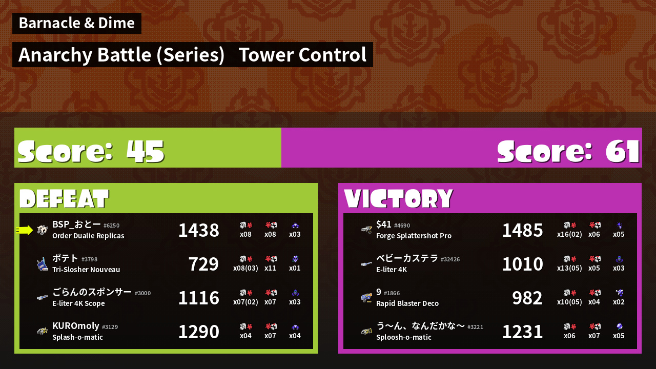 | Mode | Tower Control - Anarchy Battle (Series) | ||
