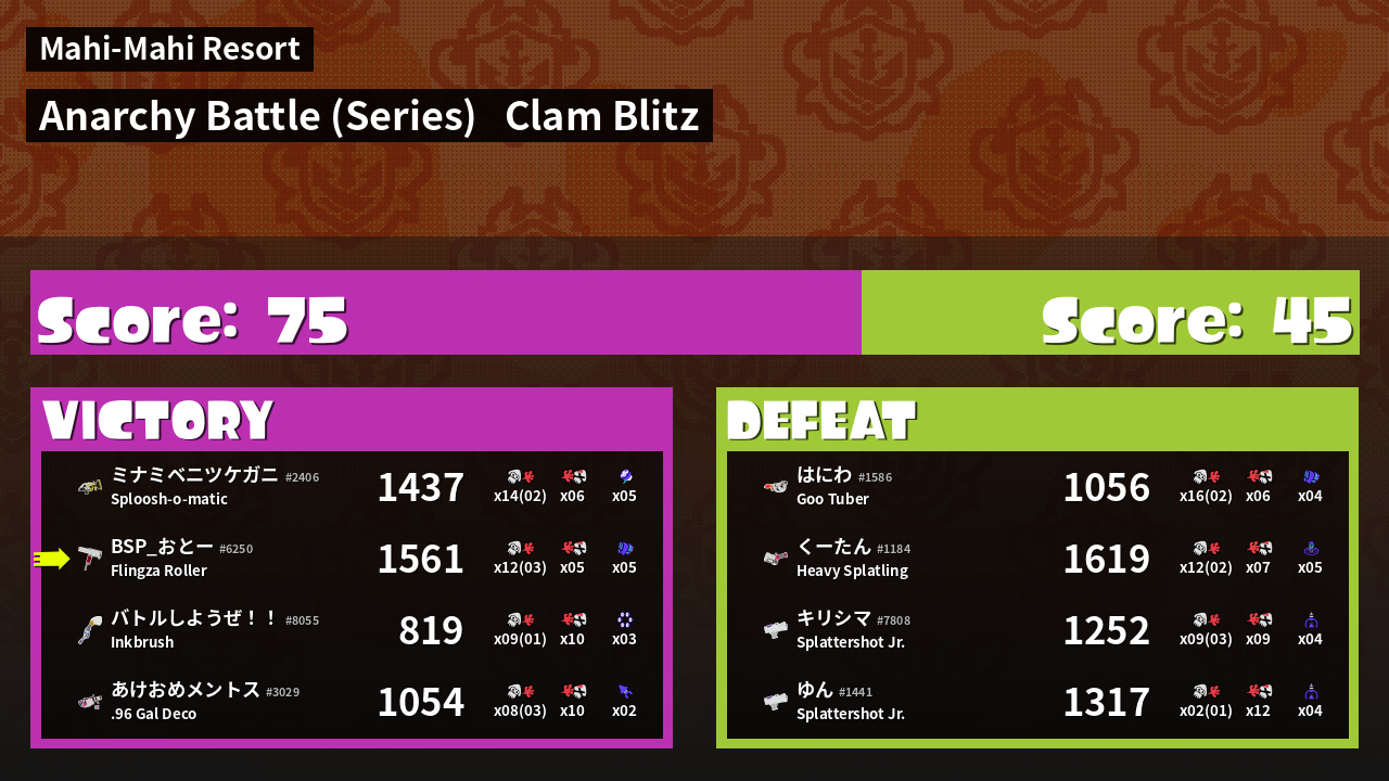 | Mode | Clam Blitz - Anarchy Battle (Series) | ||