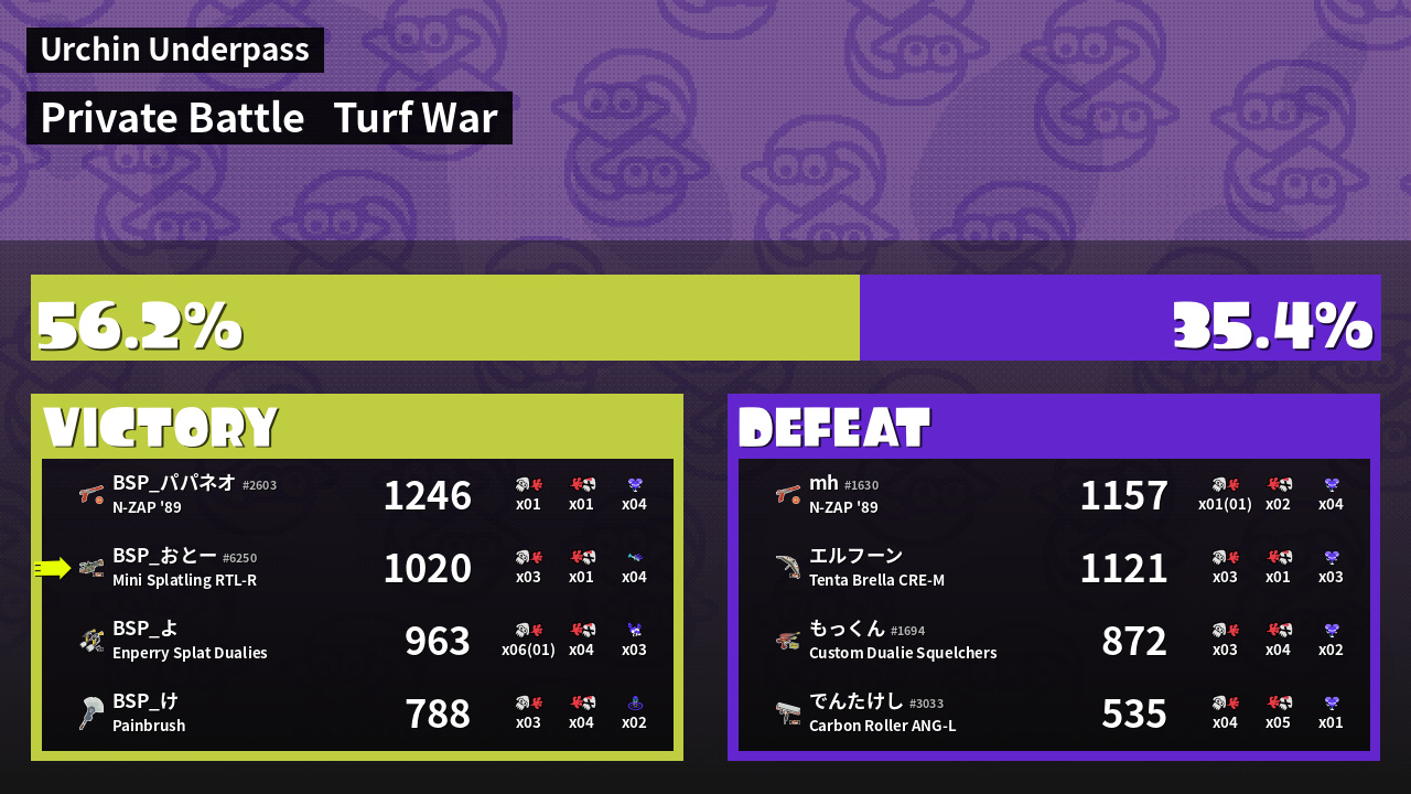 | Mode | Turf War - Private Battle | ||