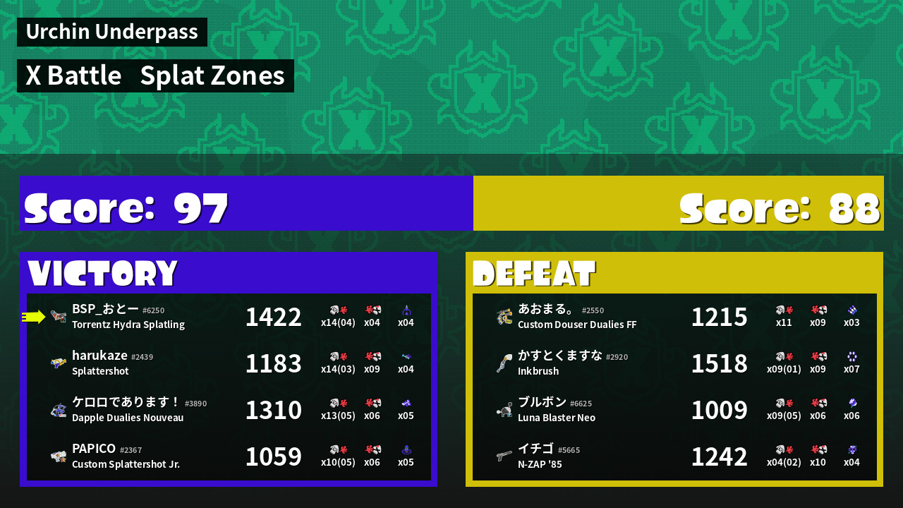 | Mode | Splat Zones - X Battle | ||