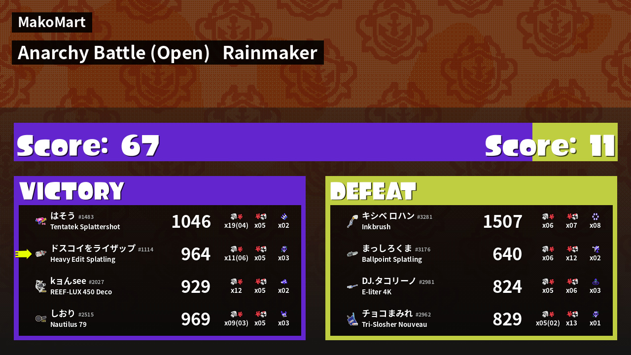 Name | Weapon | Inked | ![]() |