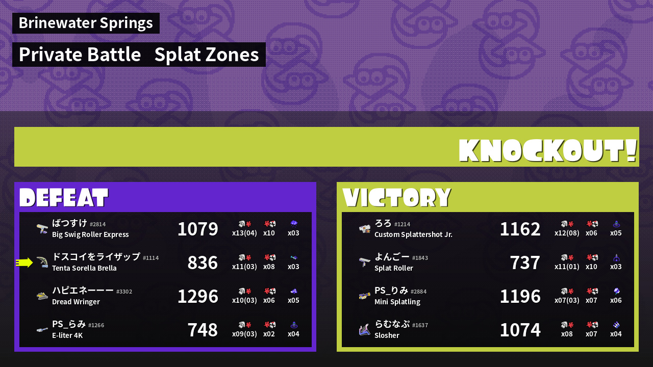 | Mode | Splat Zones - Private Battle |