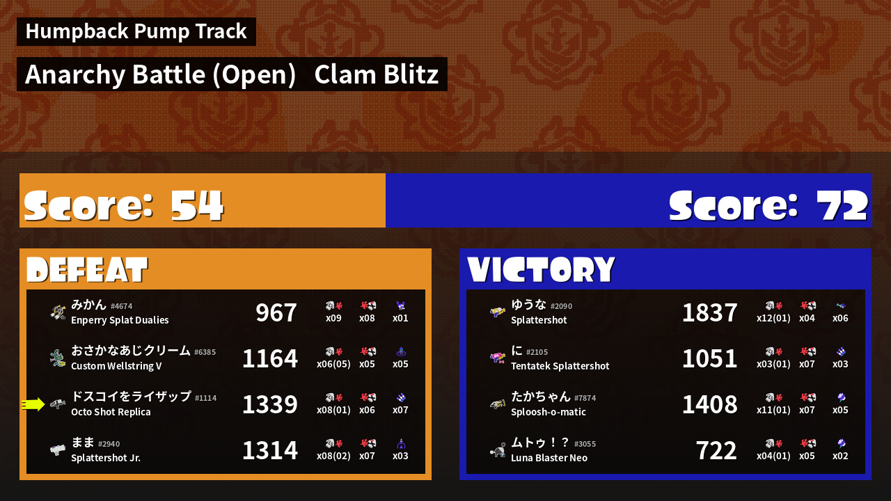 | Mode | Clam Blitz - Anarchy Battle (Open) |