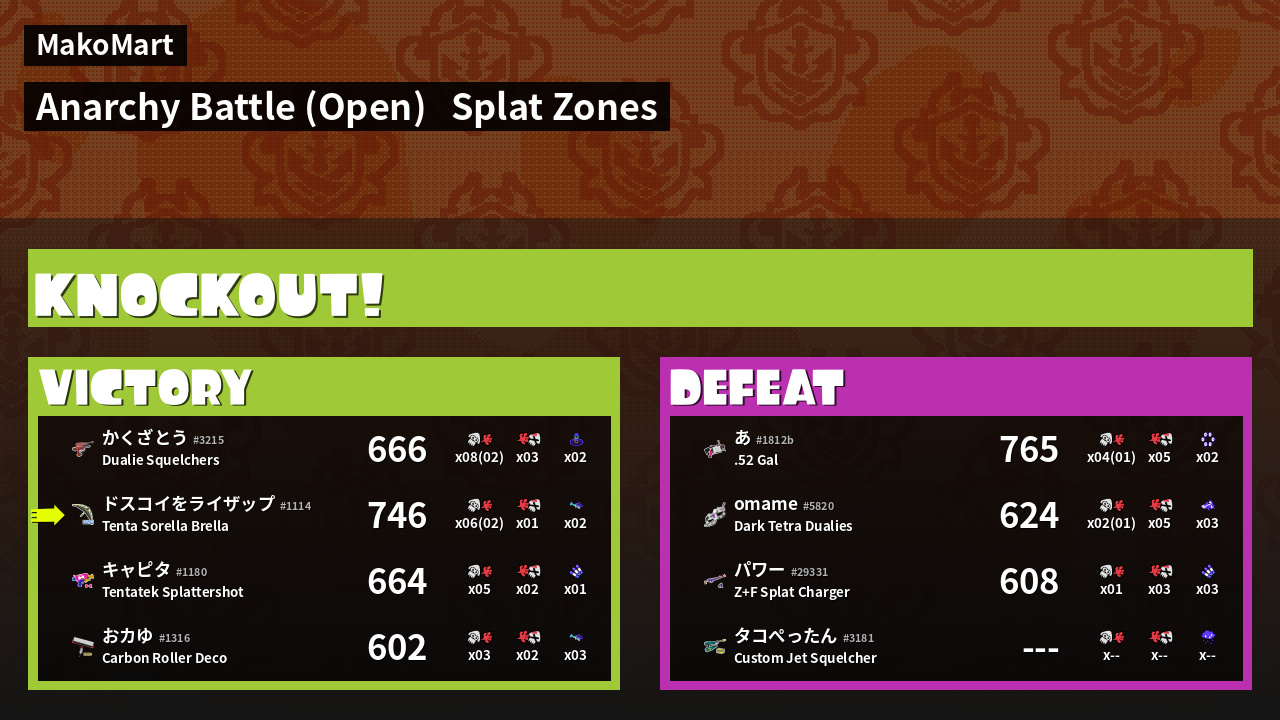 | Mode | Splat Zones - Anarchy Battle (Open) |