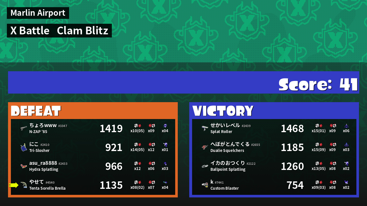 | Weapon | Tenta Sorella Brella ( Ink Mine / Trizooka) |