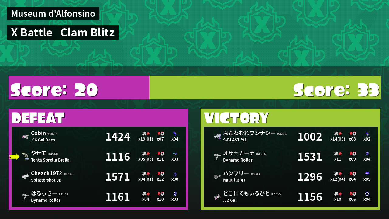 | Mode | Clam Blitz - X Battle |