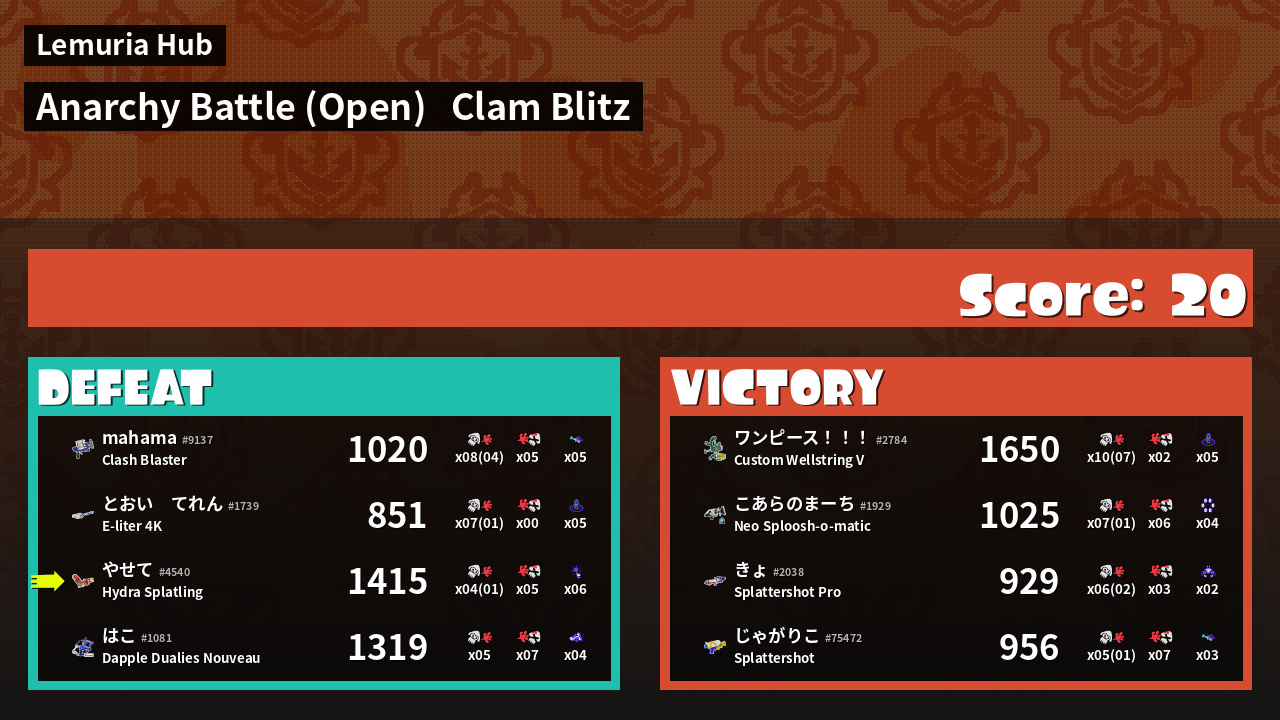 | Mode | Clam Blitz - Anarchy Battle (Open) |