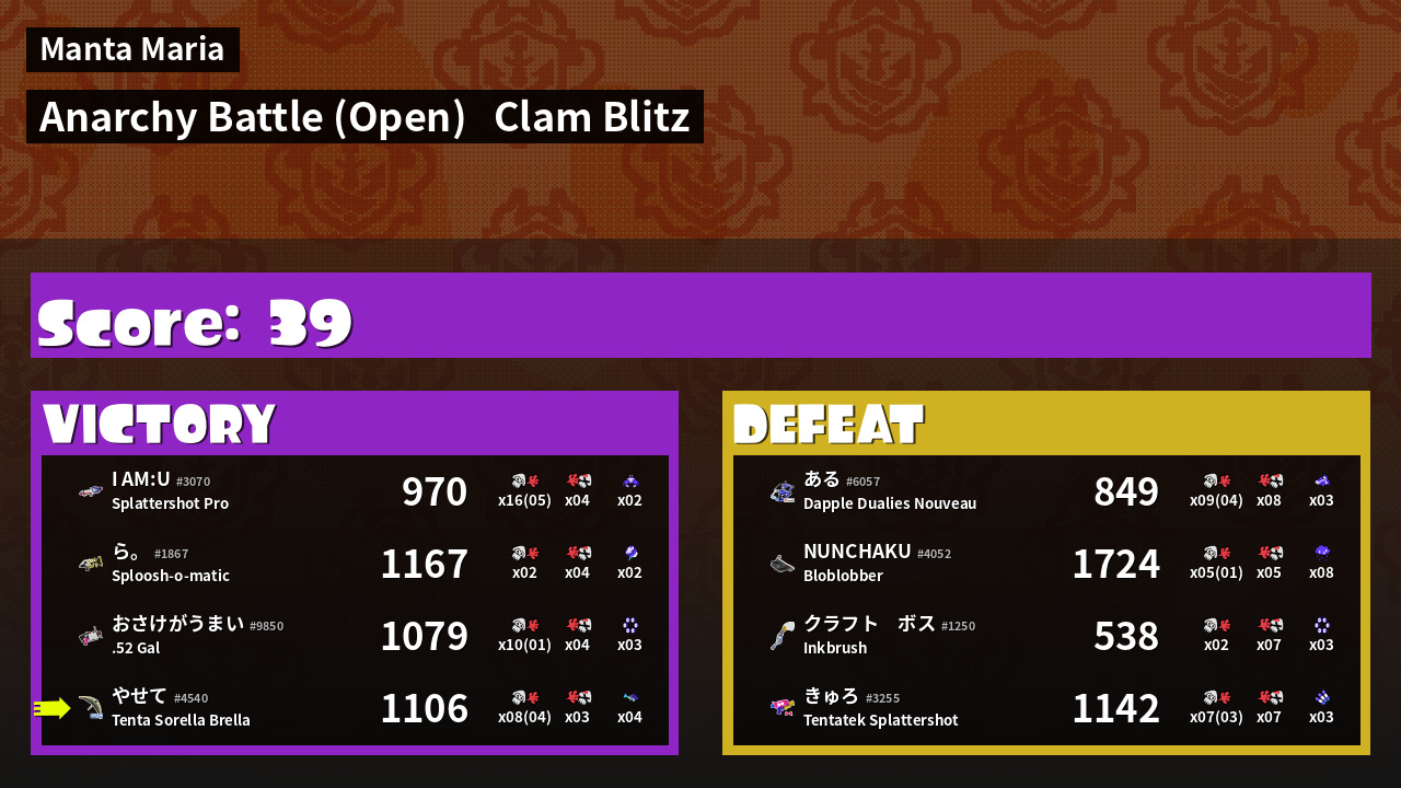 | Mode | Clam Blitz - Anarchy Battle (Open) |