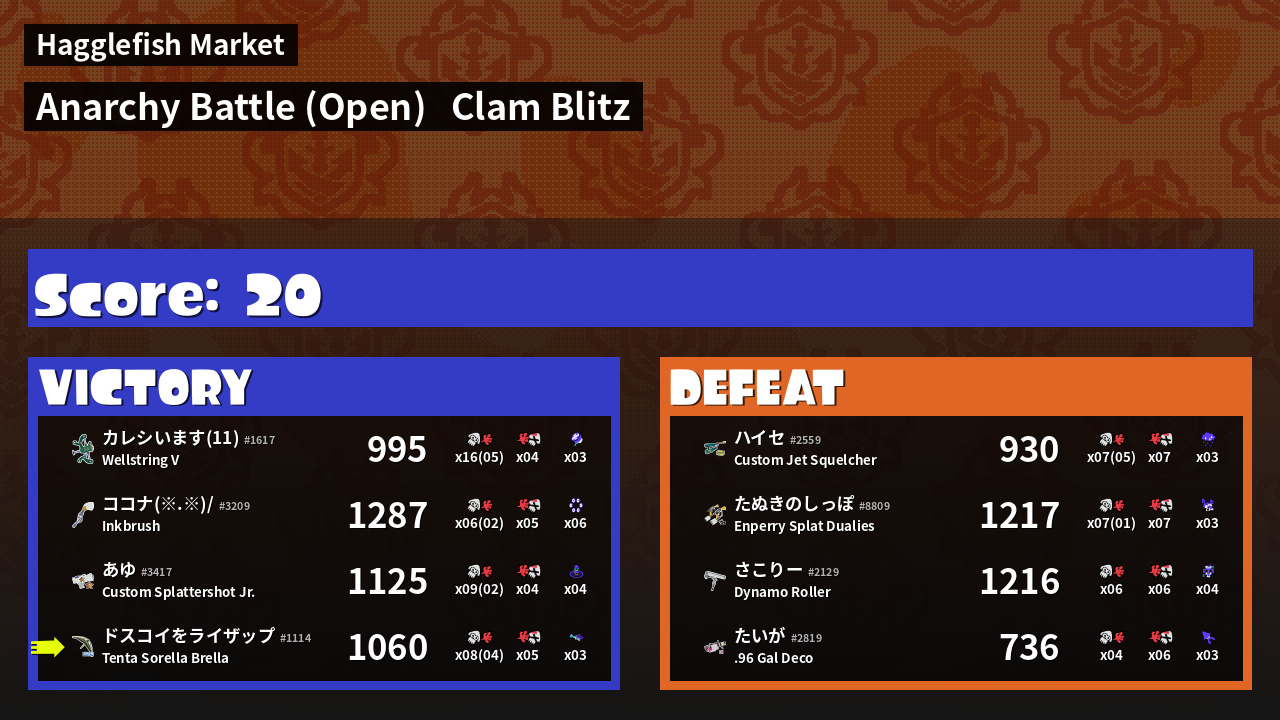 Name | Weapon | Inked | ![]() |