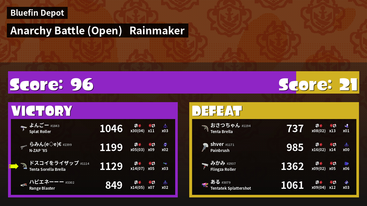 Name | Weapon | Inked | ![]() |