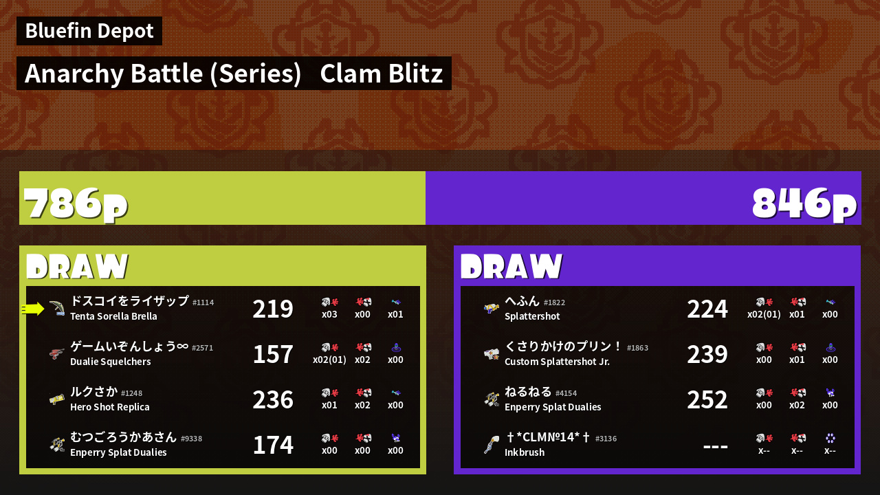 | Mode | Clam Blitz - Anarchy Battle (Series) |