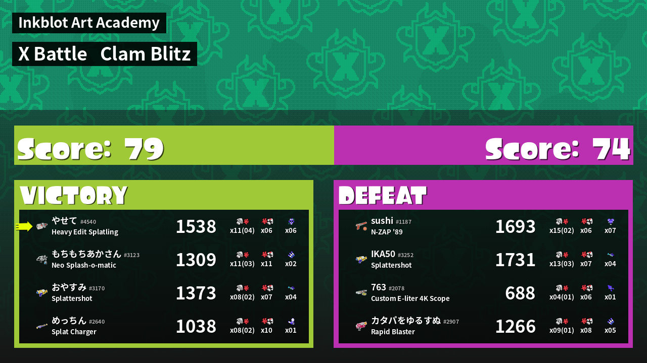 | Weapon | Heavy Edit Splatling ( Curling Bomb / Tacticooler) |