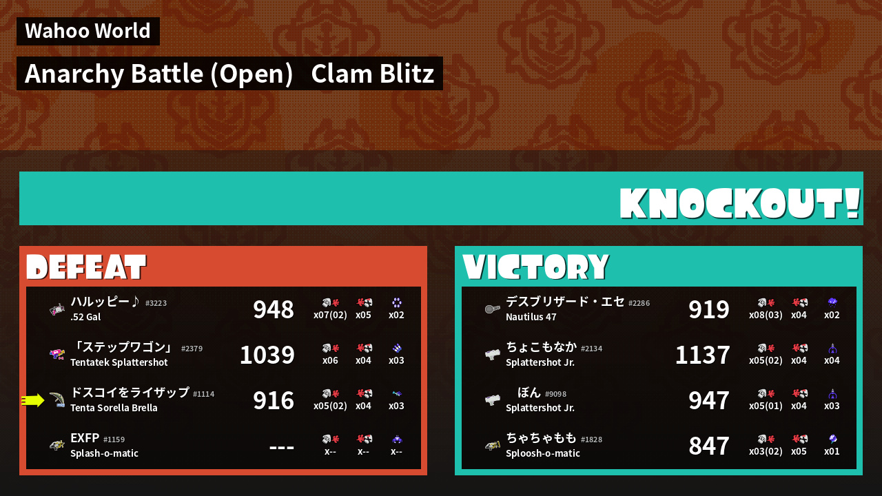 | Mode | Clam Blitz - Anarchy Battle (Open) |