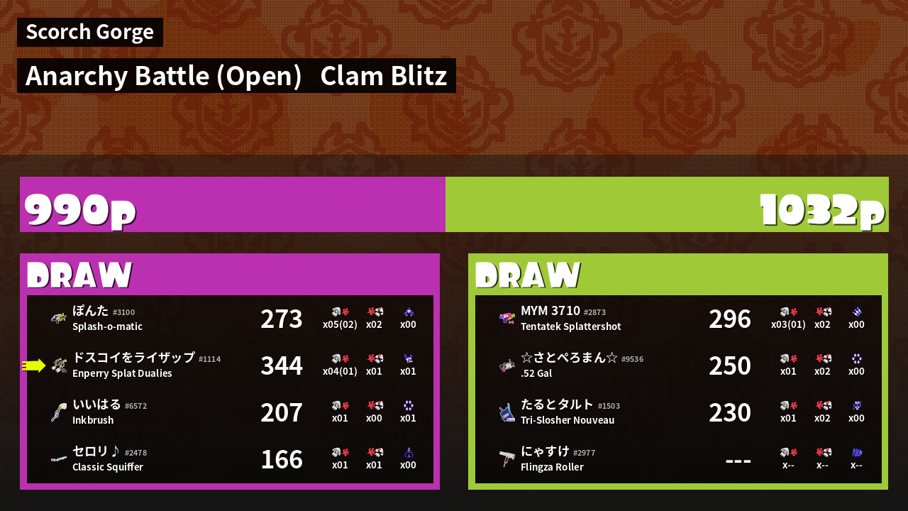 | Mode | Clam Blitz - Anarchy Battle (Open) |