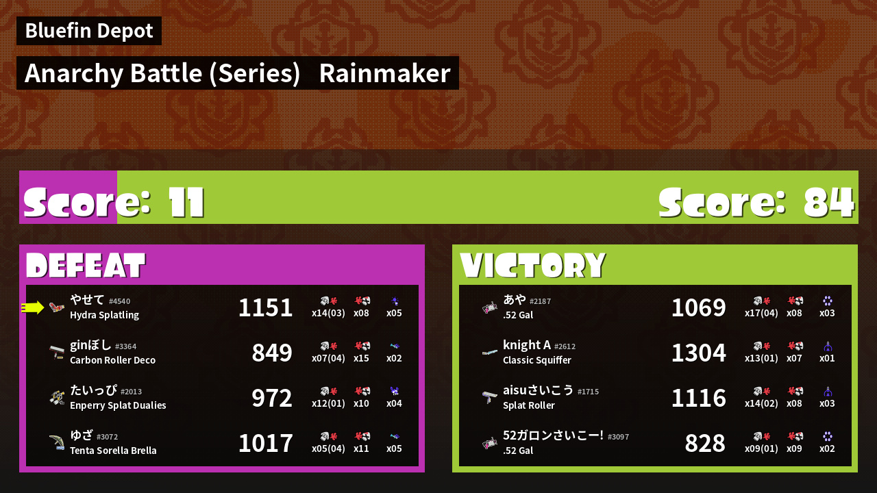 | Mode | Rainmaker - Anarchy Battle (Series) |
