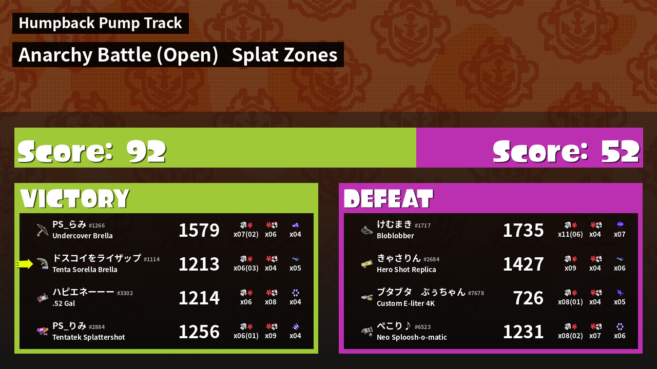 | Mode | Splat Zones - Anarchy Battle (Open) |