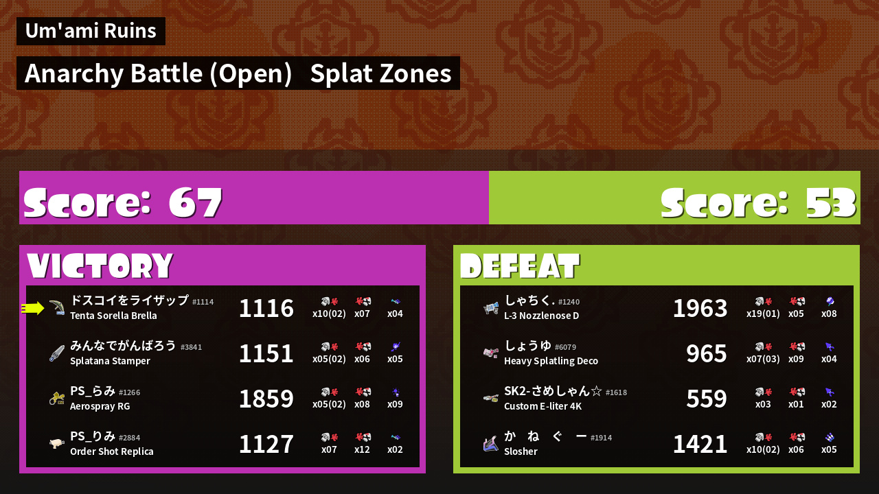 | Mode | Splat Zones - Anarchy Battle (Open) |